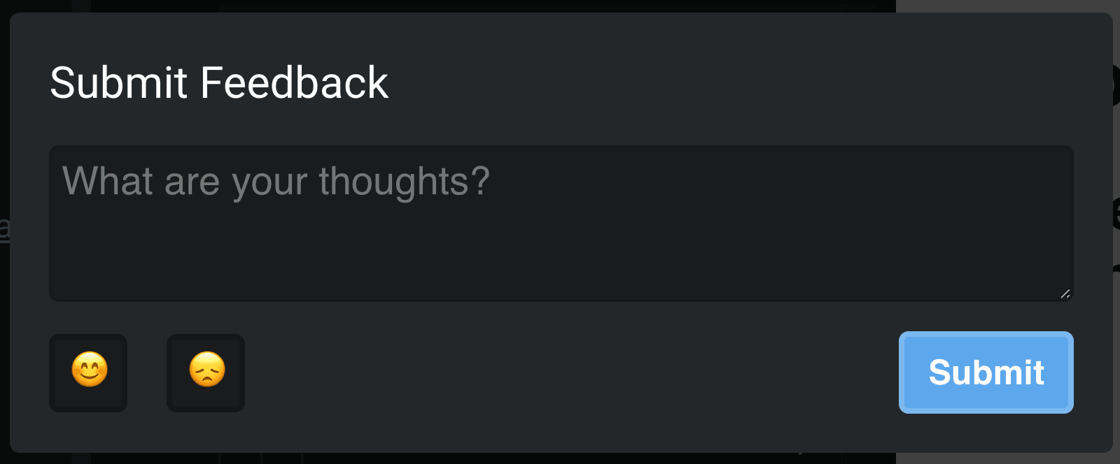 The 'Submit Feedback' button is back! If you have any ideas for a new feature, or you just want to let us know your thoughts, you can do that now from the user menu. We'll stay on top of all the feedback.